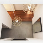 寝室フロアの中心に洗面所とトイレを配置することで、どの部屋からも動線が短くなりました。敢えて廊下は設けず、建具ではなく垂れ壁で独立空間のように演出しています。