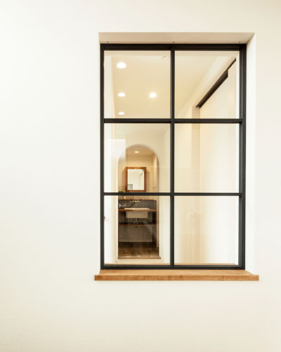 こちらは室内窓。アイアンフレームは細い方がおしゃれ。フチなどなしに、スパッと切った潔さがおしゃれ。