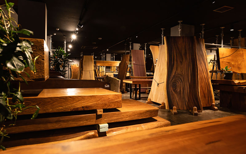 「杢巧舘」はどなたでも見学が可能です。館内では美しい杢(もく)や150枚を超える見事な一枚板をご覧いただけます。事前予約にて、職人による館内のご案内が可能です。取材のお申込みもお待ちしております。来館を希望される方は、お電話、またはお問い合わせフォームよりご連絡ください。