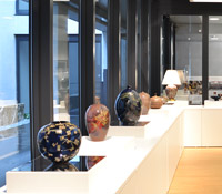 エントランスと中庭に接した一階ギャラリースペースでは、平成建設所蔵のコレクション展をはじめ、陶芸、工芸、絵画など、様々なジャンルの美術品の展示を行っています。 作家在廊時には、ギャラリートークや実演鑑賞を行うこともあります。