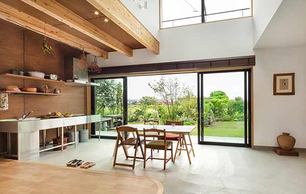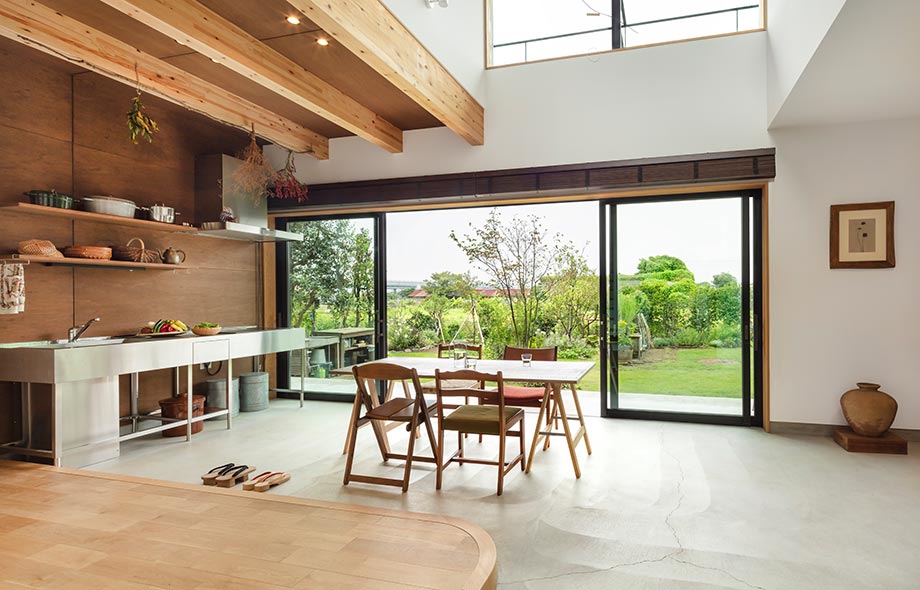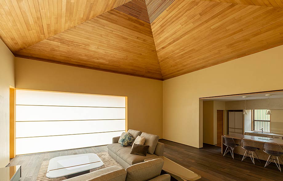 隣接する空間で構造的な強度を確保することで、住まいの中心に7m×7mの余白 ──「がらんどう」を生み出した。
