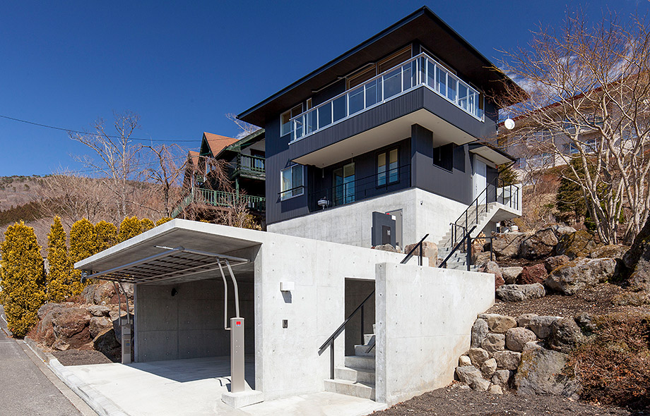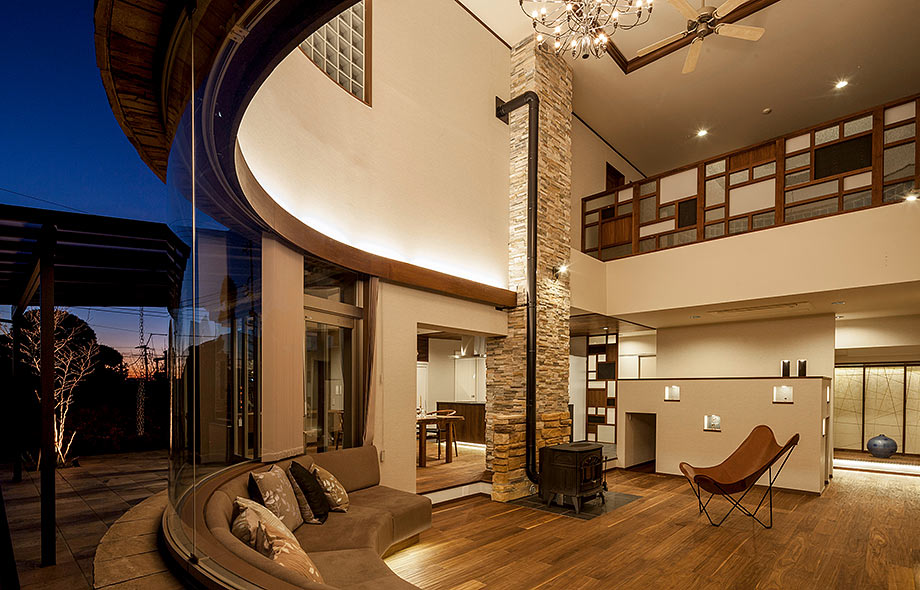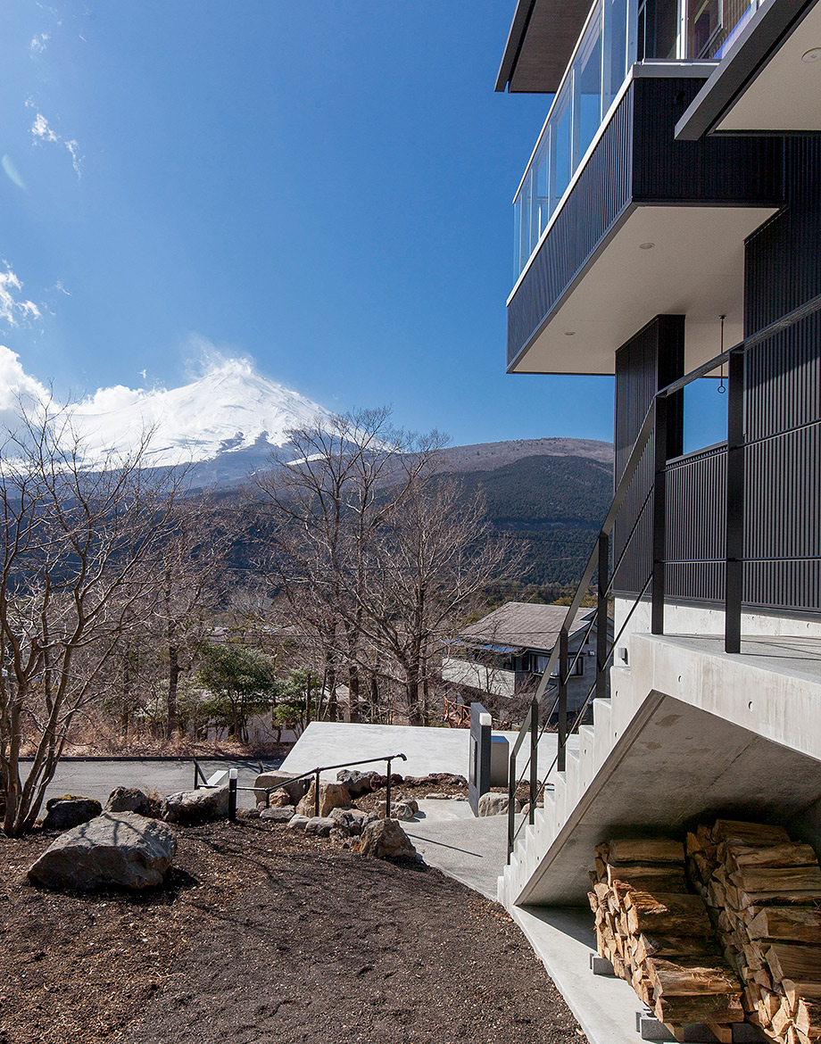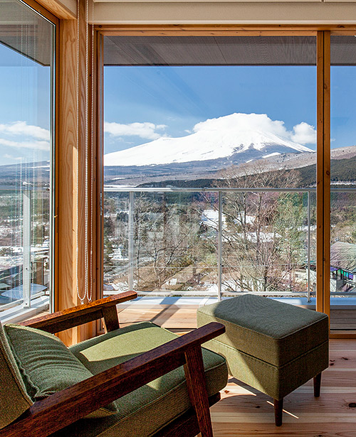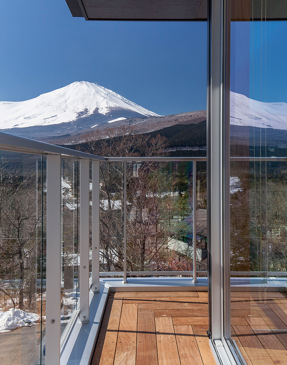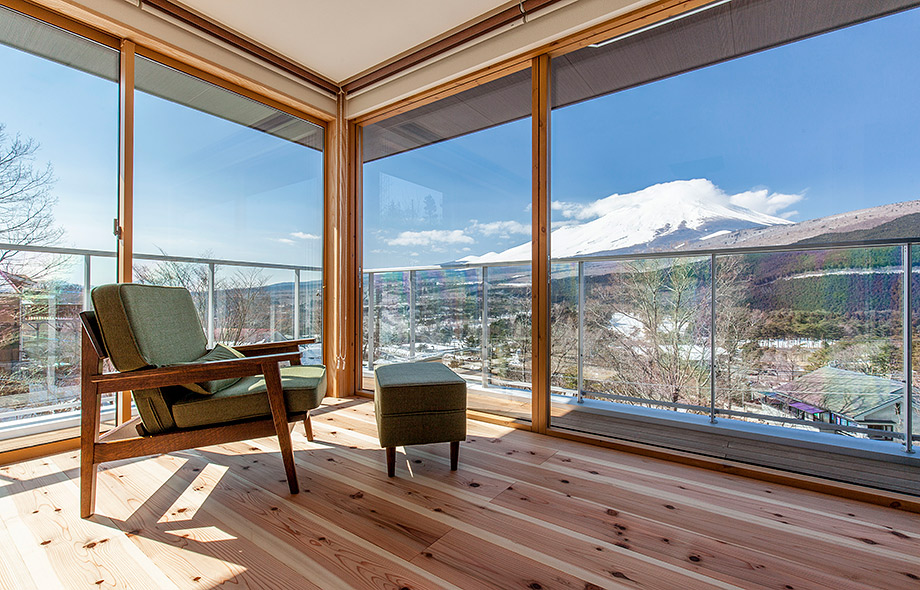大きな開口部は富士山の眺めを部屋に取り込める角度に合わせて計画。