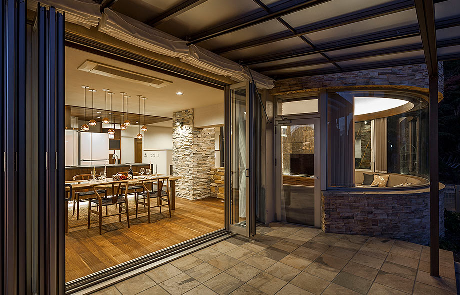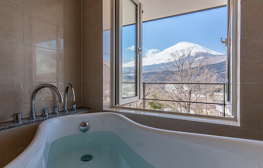 富士山を余すことなく視界に収められる、フルオープンが可能なドルフィンサッシを採用した。