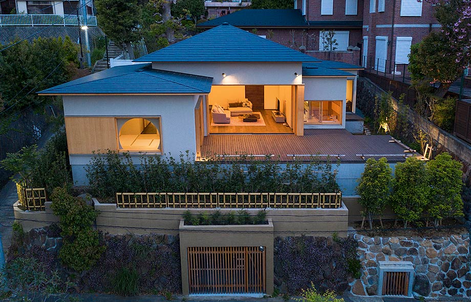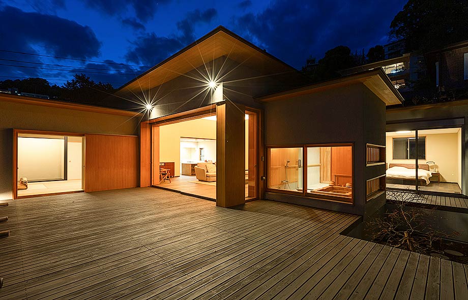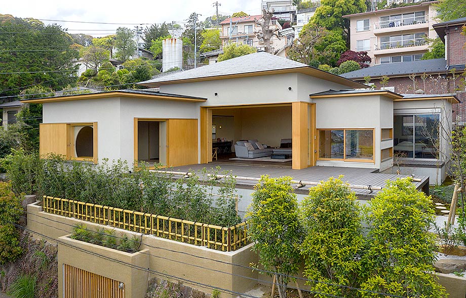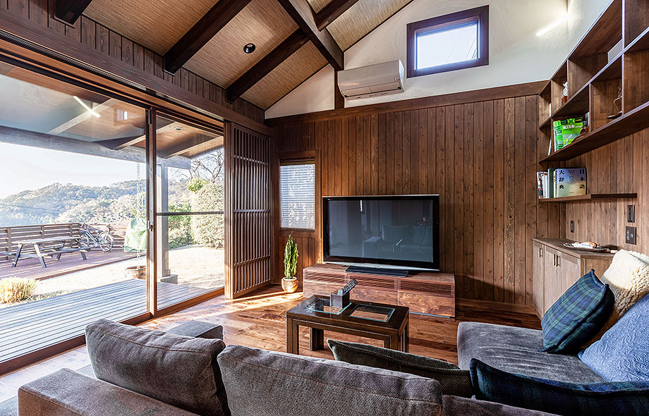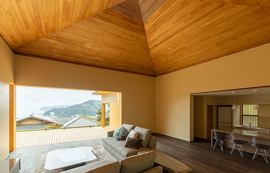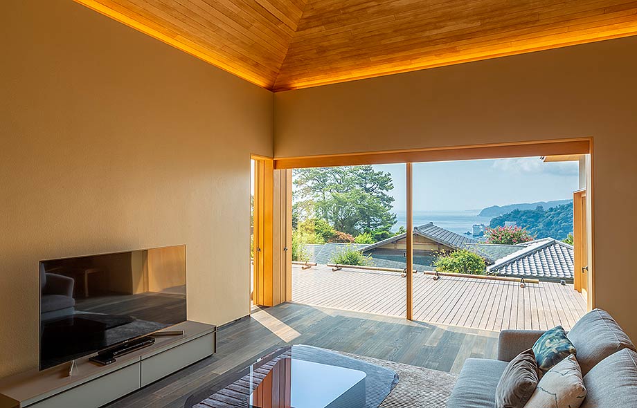 海に向かって開けた傾斜を利用し、人目が気にならない大開口を設けた。
