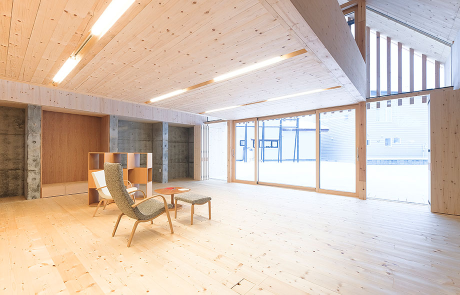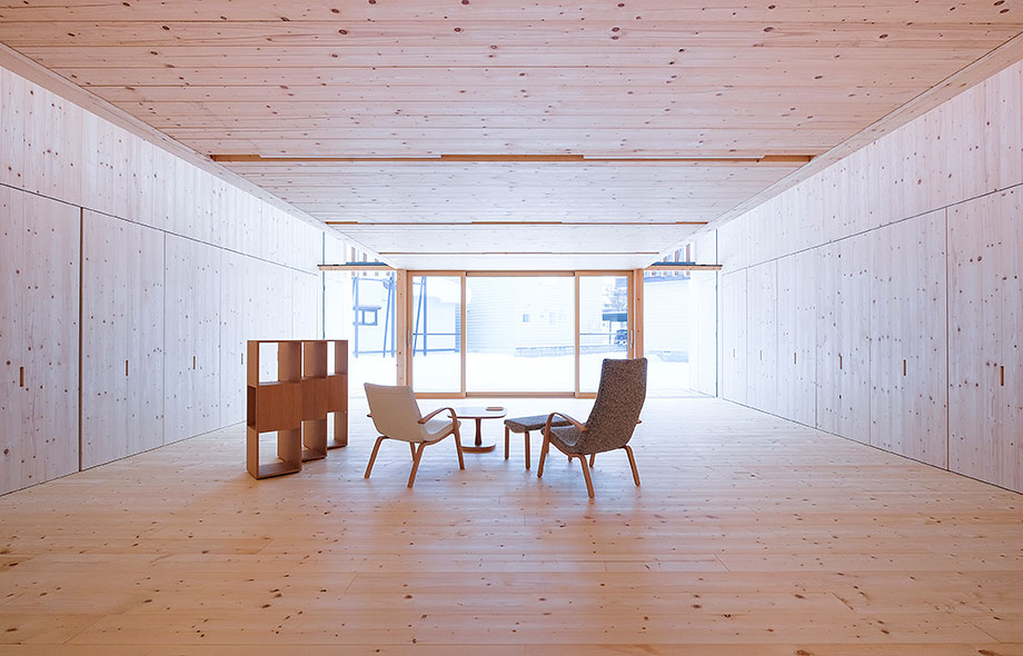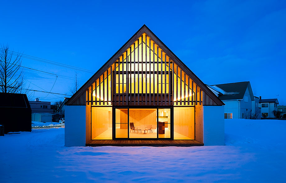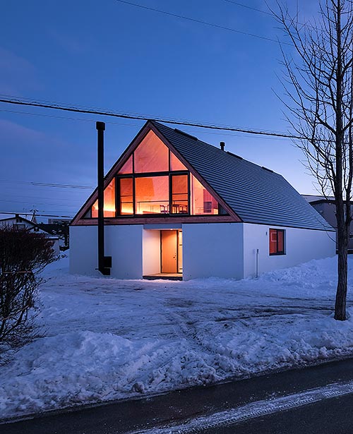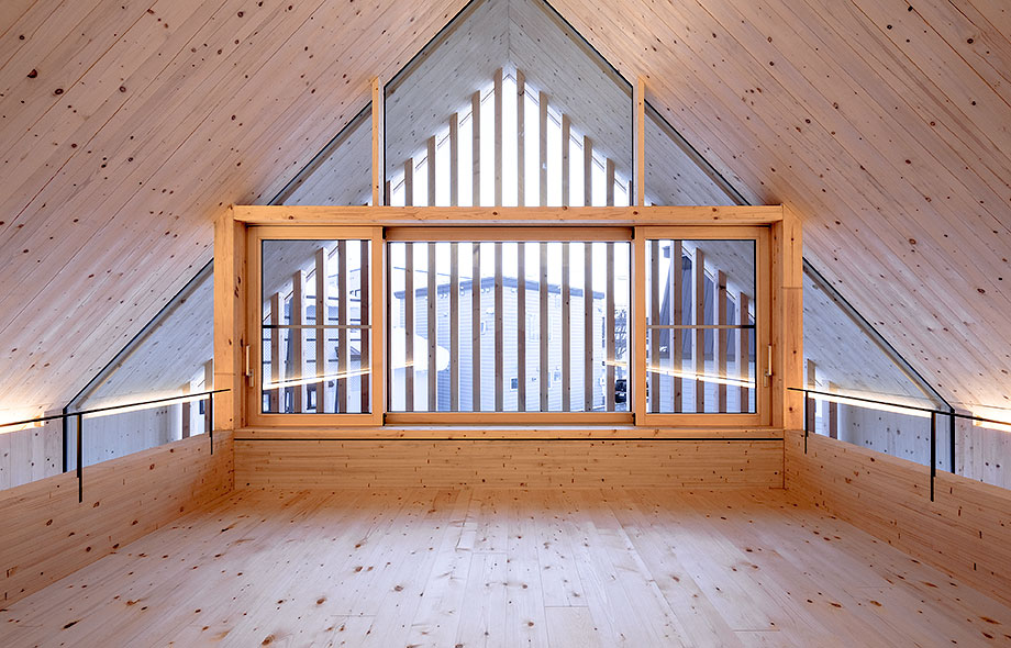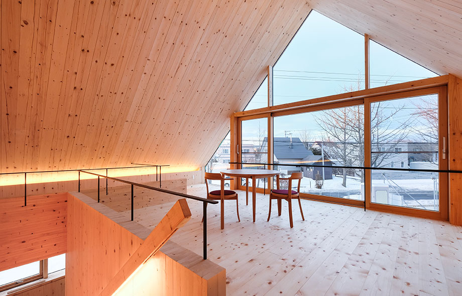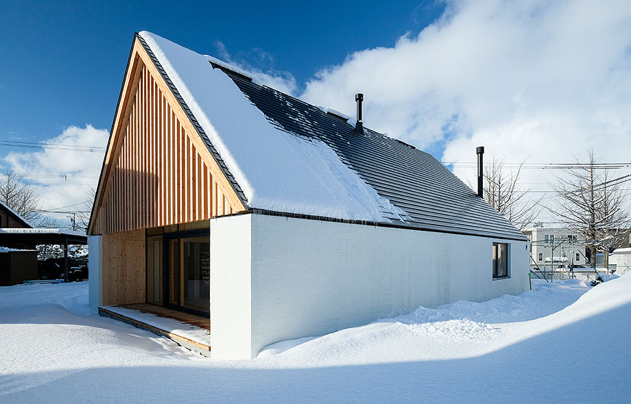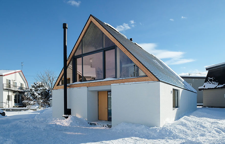 北海道という土地柄、冬季の日射を最大限に採り込むべく妻面が南北正対になるよう配置。