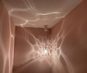 こんにちは。角谷由美です。レストリームの照明は、水の揺らぎのような光のペンダントライトを設置しました