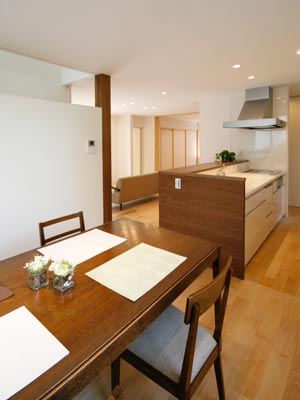 家族が多く、食事の時間が異なることがあるため、1階のダイニングは独立性を高めたつくりにしました。
