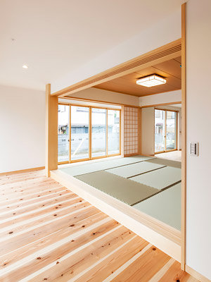 居間兼仏間の和室は、東西面の開口から風が吹き抜ける、風通しの良い空間に。