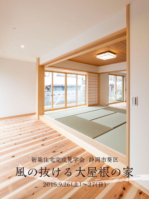 2015年9月26日(土)、27日(日)の二日間、静岡市葵区にて新築住宅完成見学会を開催します。
