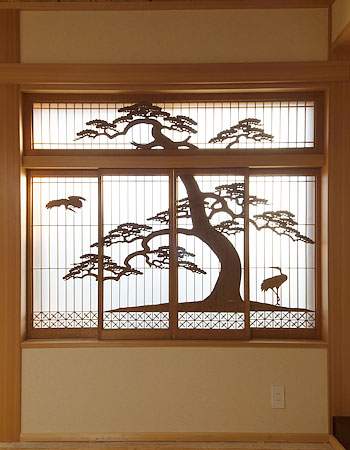 以前のお住まいで使用していた思い入れのある平書院を設置。内部から見ても、外部から見ても、印象的なアクセントになりました。