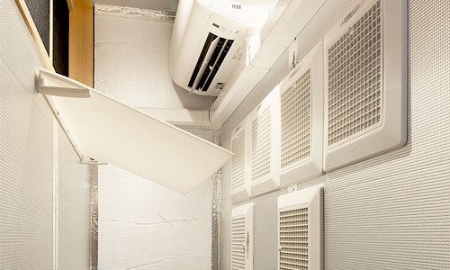 マッハシステムでは、館内の空調を独立した空調ユニットで制御するため、各部屋に個別にエアコンを設置する必要がありません。このため、部屋を広く使うことができ、内装もスマートになります。
