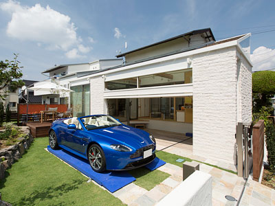 仕事を退職し、セカンドライフを満喫するための空間。スポーツカーをスライド式で格納するガレージを増築しました。男性の羨望の的です。