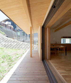 古き良き日本家屋を想起させる下屋と縁側は、ご主人様のこだわり。縁側と軒天は肌触りの良い杉材、柱は檜を使用しています。 「縁側にゴロリと寝そべってモミジを眺めたり、雨の音を楽しみたい」「緑を眺めながら料理をしたい」と仰るように、ご夫婦にとって庭は家と同等に大切なもの。 天気や季節を感じながら暮らせるよう、これから外構も少しずつ整備していきます。