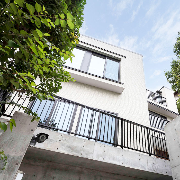 庭の代わりに、エントランスと屋上にバルコニーを設けました。 高い位置にあるため、通行人の目を気にする必要がありません。