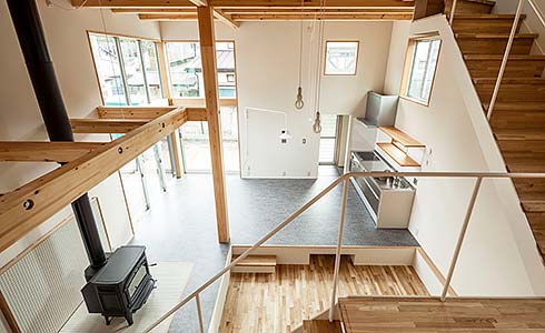 筋交いや耐力壁を最小限に抑えることができるため、自由度の高い空間設計が可能です。横の広がりだけでなく上への広がりも安全に設計できるので、木造でも大きな吹き抜けや柱のない大開口が可能です。