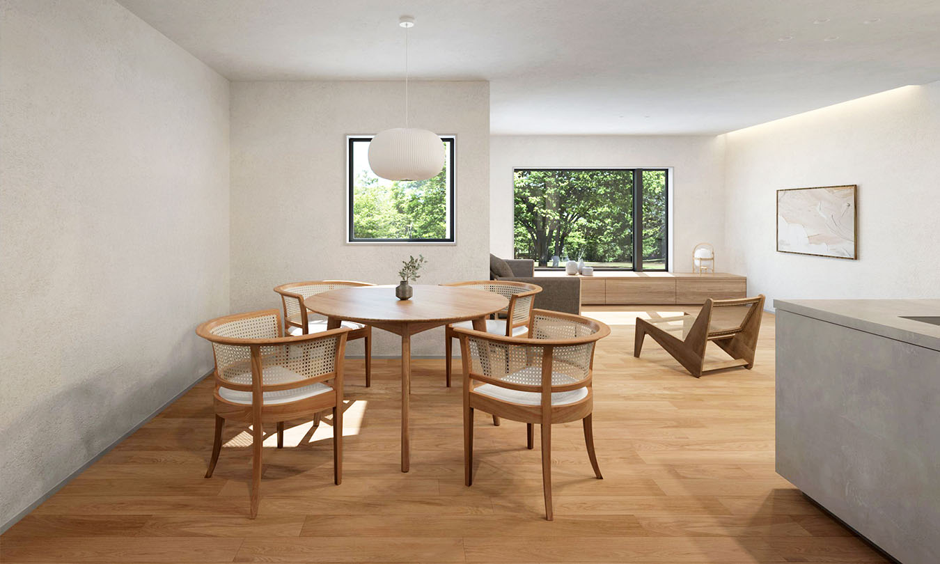 ・周囲の緑を取り込む位置に窓をしつらえ、開放的な空間に