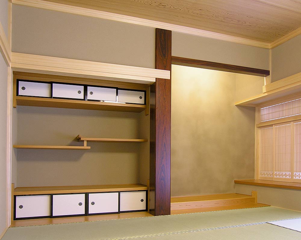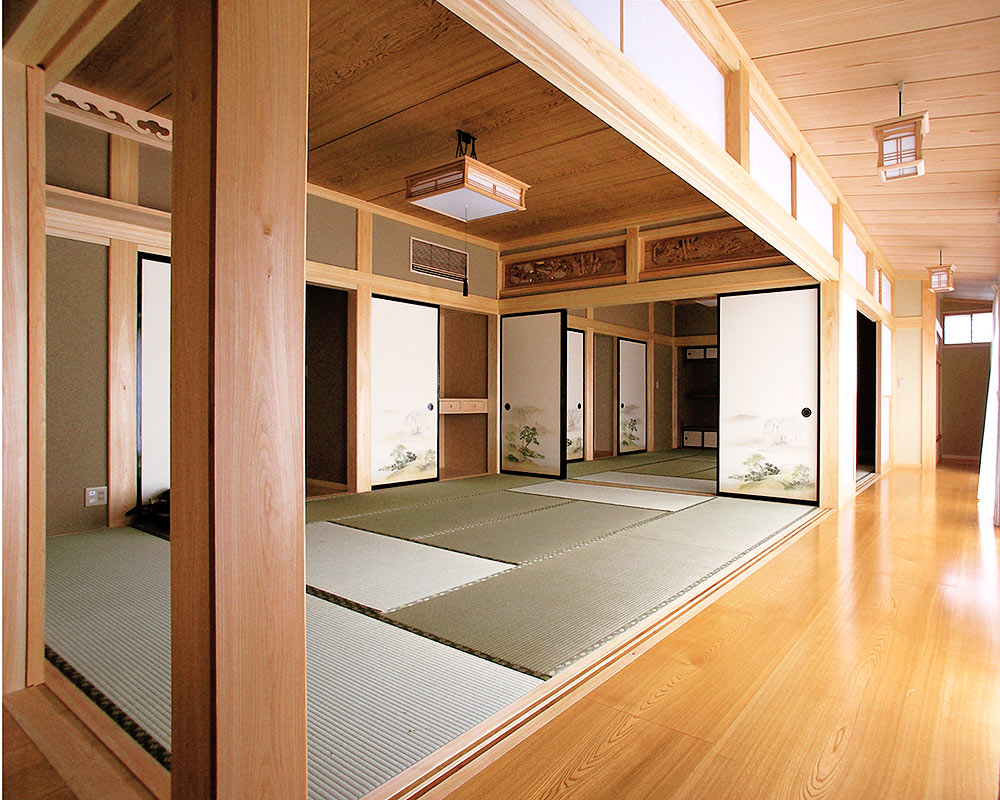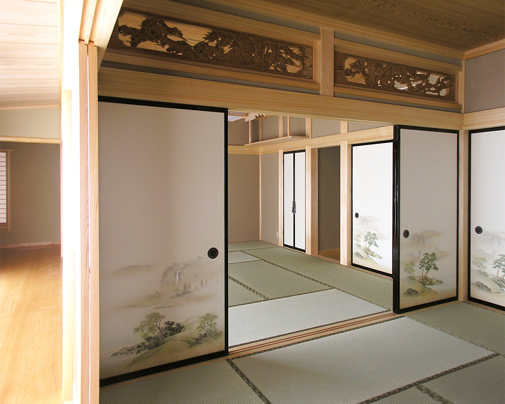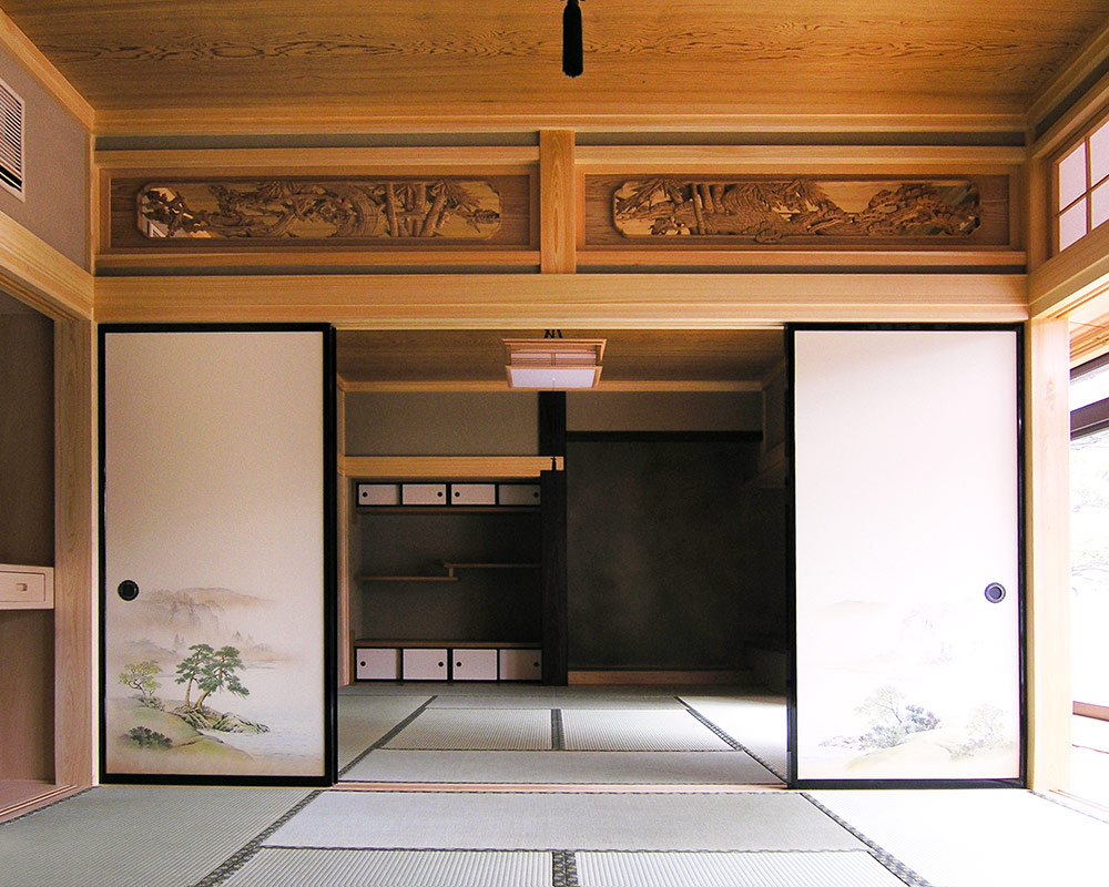 二間続きの和室は、襖を閉めれば独立した空間に、開け放てば広々とした共有空間となる。このように、用途に合わせて空間を自在に変化させる点が和室の長所。