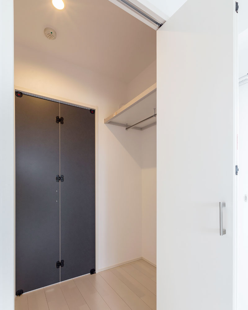 ウォークスルークローゼットによって二つの洋室を繋ぎ、賃貸マンションには珍しい回遊動線を設けた。
