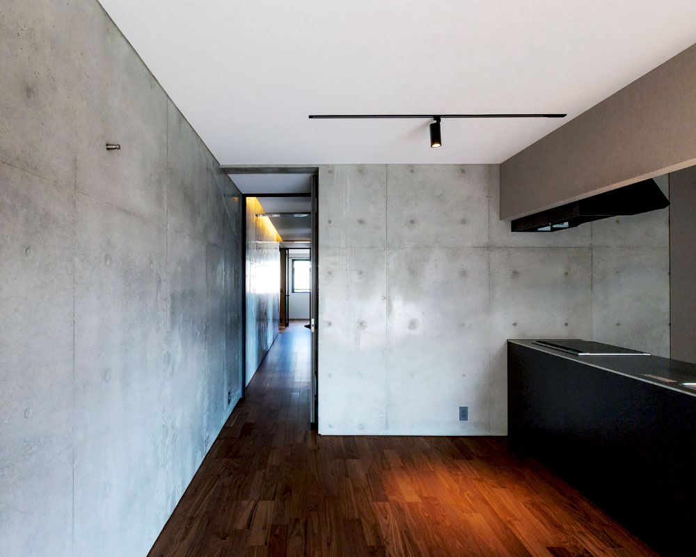 屋内の壁も多くは打放しコンクリートとした。躯体をそのまま見せることで、素材の風合いを楽しめる居住空間を生み出している。