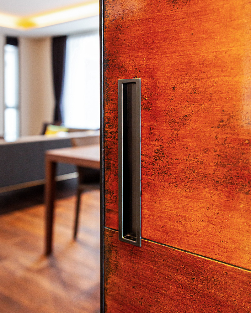 漆の建具は、角度や光の加減で表情が変わる。職人技ならではの存在感。