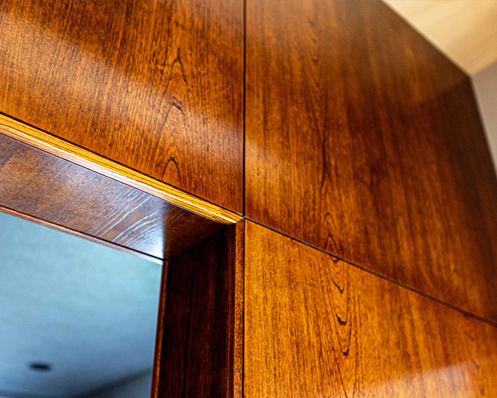 光の加減で表情を変える、拭き漆の艶やかな質感。