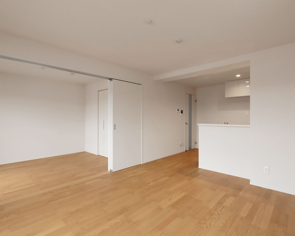 LDKと隣接する洋室は、仕切って別の空間として使うことも、繋げて一つの大空間として活用することもできる。最大で19.5帖の空間が生まれる。