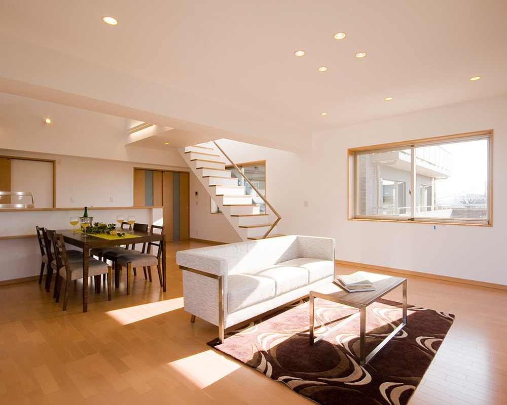 二面の窓から明るい光が降り注ぐ、子世帯LDK。2階・3階にあたる子世帯は内階段を採用したメゾネット形式。