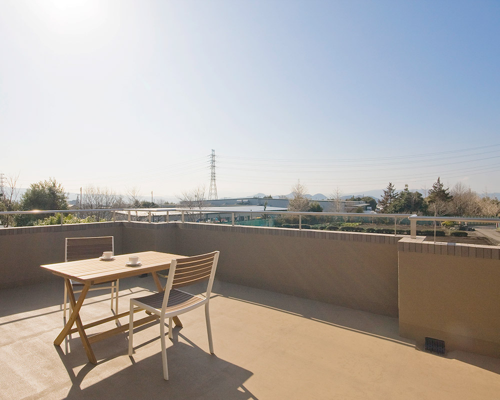 一方、2階・3階に配置された子世帯には庭の代わりに広々としたルーフバルコニーを設けた。