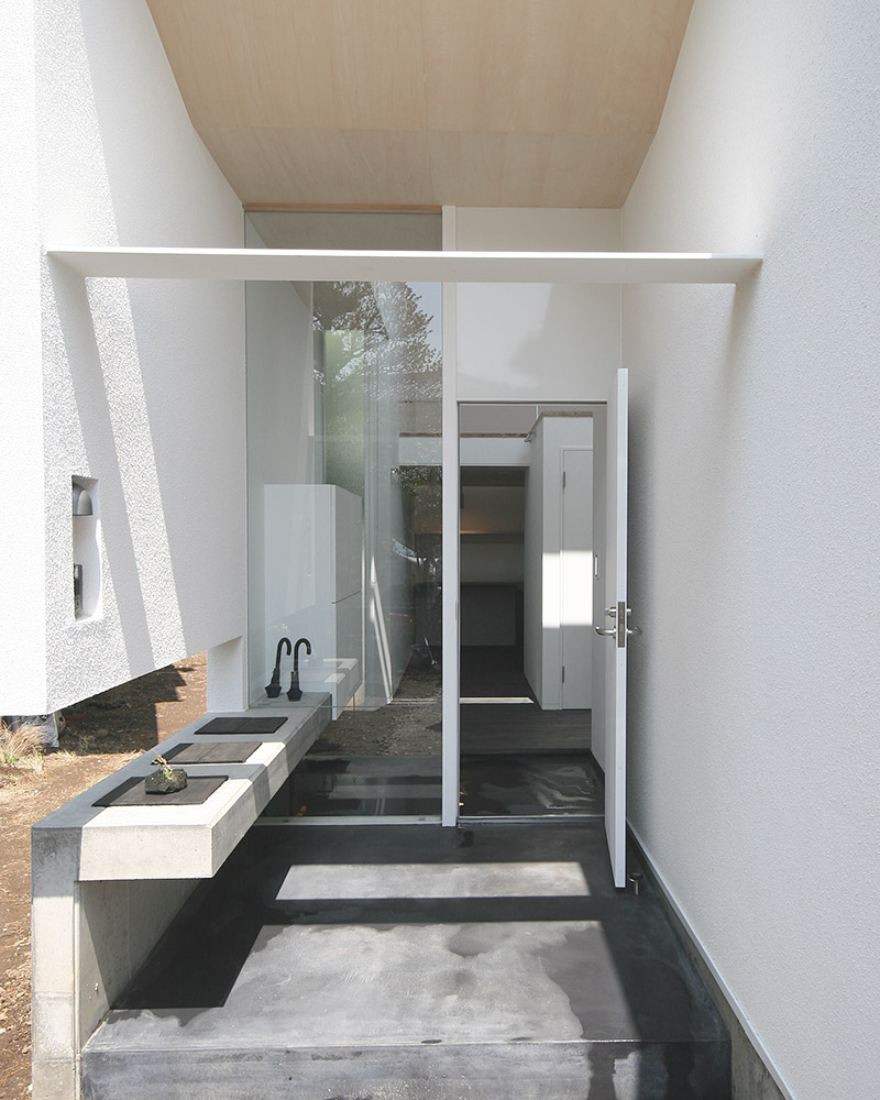白を基調としたガラスの壁の玄関。